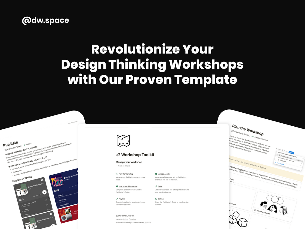 I have been helping engineering, product, designer and entrepreneur teams to go through learning journeys, through Workshops and applying models such as Lean Inception, Design Sprint. For more than 4 years I know that preparing and applying a workshop is a lot of work.